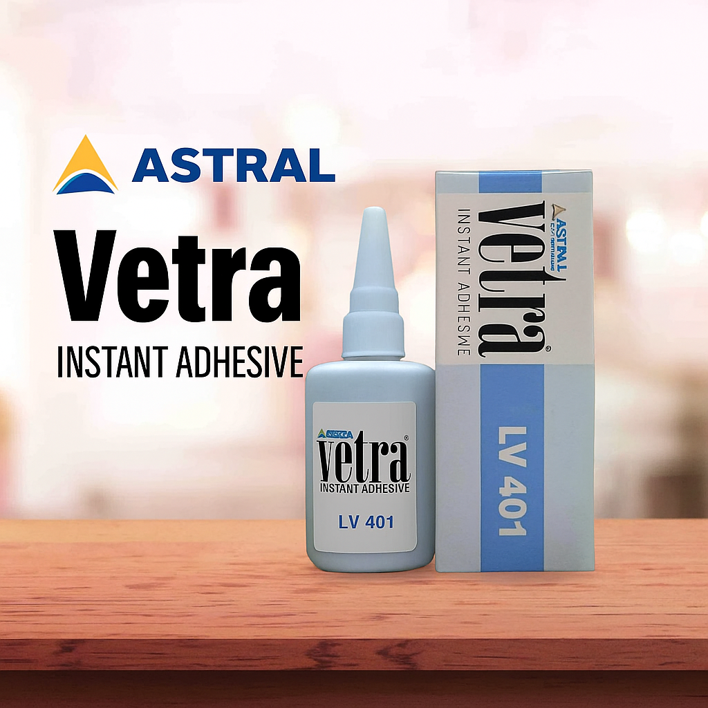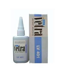 Vetra LV-401 is specially formulated for high strength, general purpose bonding of most of the non-porous substrates like plastics, rubbers, metals and porous substrates like wood, leather etc. It is recommended for use on assemblies with very close fitting parts and smooth, even surfaces. It can also be used as a post-assembly adhesive to wick into parts.